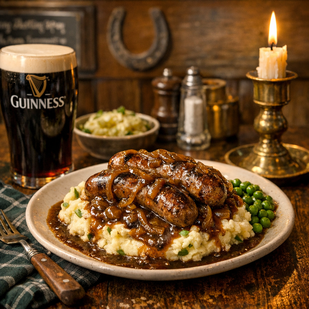 Det finns rätter som inte bara mättar utan också omfamnar. På Irland är Bangers & Mash just en sådan – en pubklassiker som kombinerar saftiga korvar, krämigt mos och en mörk, mörk lökgravy som smakar både vardag och helg. Det är enkel mat, rustik mat, och framför allt: mat som gör dig glad.
