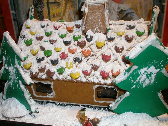 Kul är att göra ett litet landskap till huset. Jag har inte så mycket plats men kan man göra lite utrymme kan man skapa en massa fint runt omkring, som granar, marsipantomtar och annat… Själv brukar jag i alla fall ställa upp ett par granar kring huset, alltid något!