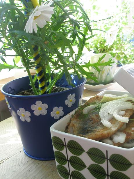 Varva de stekta strömmingarna med skivad lök och dillkvistar i en fin form som de kan serveras ur. Häll över lagen medan strömmingarna fortfarande är varma. Förvara i kyl till nästa dag.