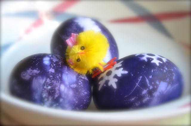 Att få till vackra påskägg är ingen konst – och du kan dessutom åstadkomma det med sådant du har hemma. Blåbär från frysen – gurkmeja från kryddhyllan – kaffe från kaffeburken – grönt te… Bara att koka upp de kryddor, bär osv du väljer, låta dra och sen lägga i äggen i färgbad helt enkelt. Känns mycket trevligare än att använda artificiella fäger!
