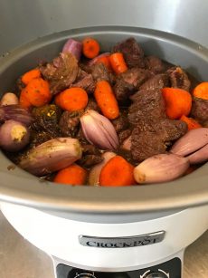 Långkok i CrockPot: Högrev med lök, morötter, örter och vin