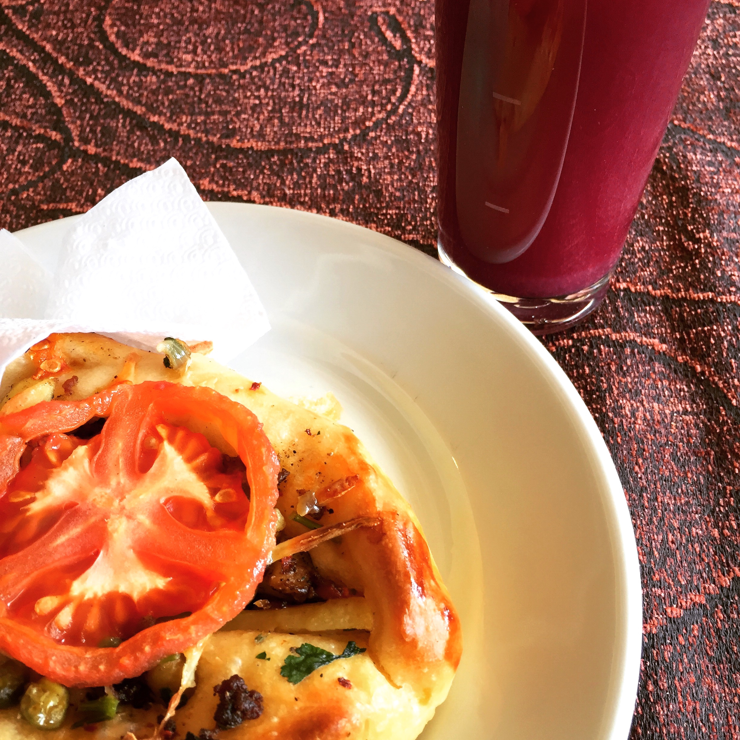 Dela degen i 12 delar och kavla ut varje deg tunt till en oval platta. Fördela fyllningen på bröden och vik över kanterna så att fyllningen hålls på plats. Låt jäsa på plåt i 15 minuter och värm under tiden ugnen till 225 grader.