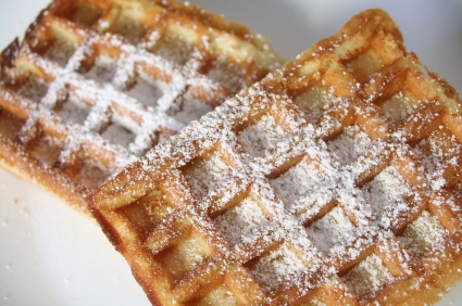 Belgiska våfflor är lite olika de våfflor vi äter i Sverige, framför allt för att de gräddas i ett annat slags våffeljärn som ger högre rutmönster och lite tjockare våfflor. Men det funkar finfint att grädda belgiska våfflor även i vanligt våffeljärn även om de förstås blir lite tunnare än de egentligen ska vara. Det här receptet har jag fått av en god vän, och hon kallar det helt sonika för Brysselvåfflor. I hennes familj äts de till frukost, ofta som de är eller bara med lite florsocker och färska bär, men de är också jättegoda med sylt och vispad grädde, eller med smält choklad!